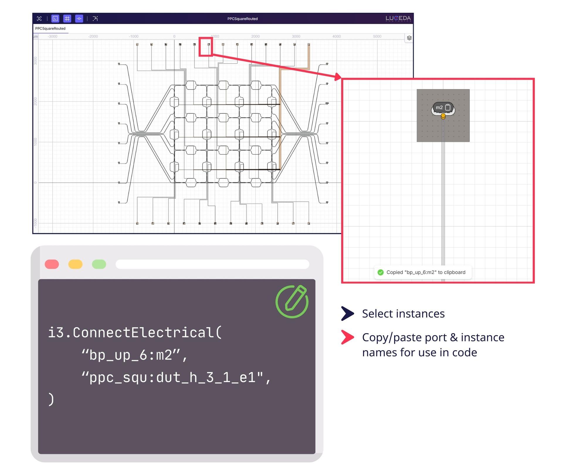 Instance and port names can now be easily inspected and copied for direct use in your code, streamlining placement and routing (P&R).